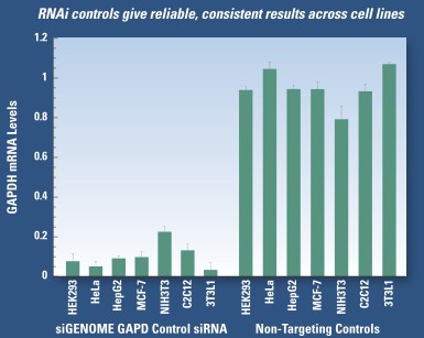 Thermo Scientific siGENOME Lamin A/C Control siRNA is a validated positive control, guaranteed to silence Lamins A and C in human, mouse, or rat cells. siGENOME positive control siRNA designs are highly functional, chemically synthesized, and mostly unmodified siRNA duplexes that allow positive silencing for validation of experimental design and detection methodologies.