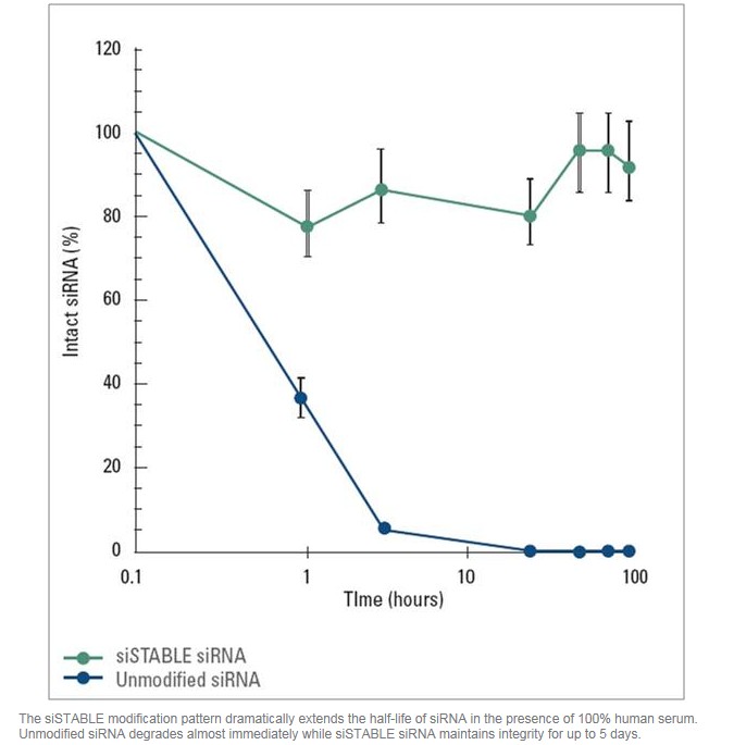 特殊的siSTABLE化学修饰技术显著提升siRNA稳定性;