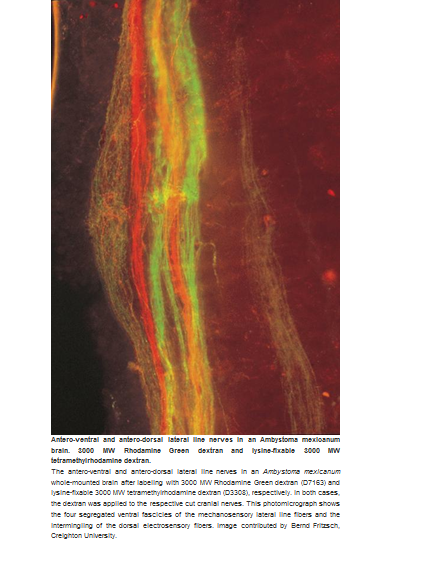 Some applications require that the dextran tracer be treated with formaldehyde or glutaraldehyde for subsequent analysis. For these applications, we offer "lysine-fixable" versions of most of our dextran conjugates of fluorophores or biotin. These dextrans have covalently bound lysine residues that permit dextran tracers to be conjugated to surrounding biomolecules by aldehyde-mediated fixation for subsequent detection by immunohistochemical and ultrastructural techniques. We have also shown that all of our 10,000 MW Alexa Fluor® dextran conjugates can be fixed with aldehyde-based fixatives.