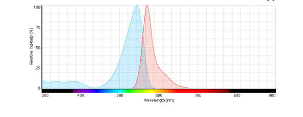 BODIPY® TMR-X dye is bright, orange fluorescent dye with similar excitation and emission to tetramethyrhodamine (TRITC) or Alexa Fluor® 555 dye. It has a high extinction coefficient and fluorescence quantum yield and is relatively insensitive to solvent polarity and pH change. In contrast to the highly water soluble fluorophores Alexa Fluor® 488 dye and fluorescein (FITC), BODIPY® dyes have unique hydrophobic properties ideal for staining lipids, membranes, and other lipophilic compounds. BODIPY® TMR-X dye has a relatively long excited-state lifetime (typically 5 nanoseconds or longer), which is useful for fluorescence polarization-based assays and a large two-photon cross-section for multiphoton excitation. In addition to reactive dye formulations, we offer BODIPY® TMR-X dye conjugated to a variety of antibodies, peptides, proteins, tracers, and amplification substrates optimized for cellular labeling and detection.