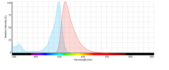 Oregon Green® 488 can be used as a reference standard for Oregon Green® 488 conjugates or a pH sensor of moderately acidic solutions (pKa ~4.7)
