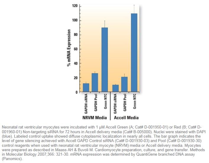 Accell siRNA在宽松的实验条件下提供给研究者高效的siRNA传递效率和特异的靶基因沉默效果。
