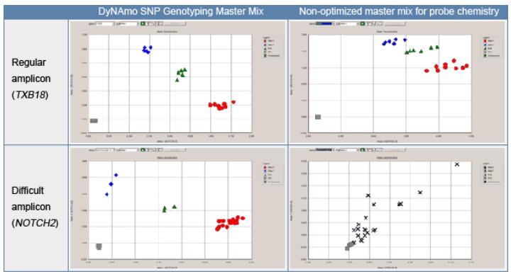 即使面对具有挑战性的扩增片段,DyNAmo SNP Genotyping Master Mix也能提供出众的性能