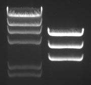 • Phi6 dsRNA in a total concentration of 500 ng/µL in 10 mM Tris-HCl (pH 8.0), 1 mM EDTA. The relative concentrations of the S, M, and L segments are approximately 110, 150, and 240 ng/µL, respectively.