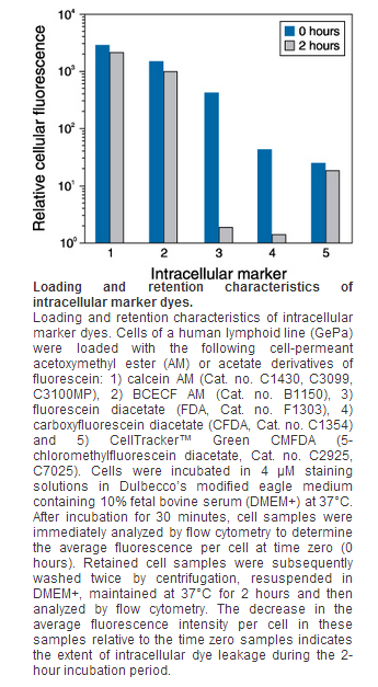 Fluorescein diacetate (FDA) is a cell-permeant esterase substrate that can serve as a viability probe that measures both enzymatic activity, which is require to activate its fluorescence, and cell-membrane integrity, which is required for intracellular retention of their fluorescent product. Upon hydrolysis by intracellular esterases, this AM ester yields fluorescein.