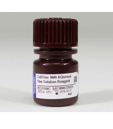 The CellTiter 96® AQueous One Solution Cell Proliferation Assay is a colorimetric method for determining the number of viable cells in proliferation, cytotoxicity or chemosensitivity assays. The CellTiter 96® AQueous One Solution Reagent contains a tetrazolium compound [3-(4,5-dimethylthiazol-2-yl)-5-(3-carboxymethoxyphenyl)-2-(4-sulfophenyl)-2H-tetrazolium, inner salt; MTS] and an electron coupling reagent (phenazine ethosulfate; PES). PES has enhanced chemical stability, which allows it to be combined with MTS to form a stable solution. The CellTiter 96® AQueous Assay uses phenazine methosulfate (PMS) as the electron coupling reagent, and PMS Solution and MTS Solution are supplied separately. PES has enhanced chemical stability, which allows it to be combined with MTS to form a stable solution.