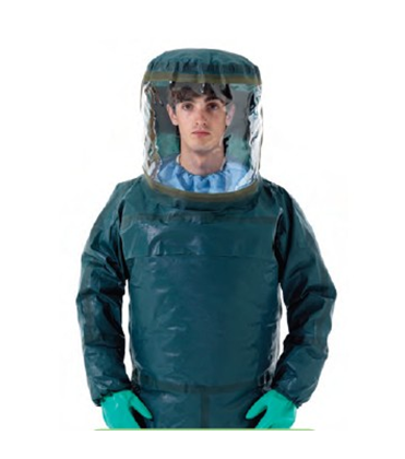 全面防护液体和颗粒有害物;防液体有机化学品、无机化学品及生化介质;防放射微粒污染;防护服特点:双袖带袖口松紧、四个排气阀、连体袜子及外裤腿、紧急逃生条、全景面罩。 适合需要防护高浓度化学品和生物介质的有害区域。