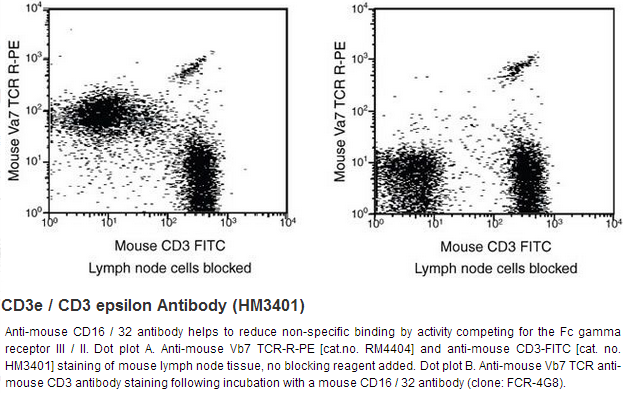 CD3 complex is crucial in transducing antigen-recognition signals into the cytoplasm of T cells and in regulating the cell surface expression of the TCR complex. T cell activation through the antigen receptor (TCR) involves the cytoplasmic tails of the CD3 subunits CD3 gamma, CD3 delta, CD3 epsilon and CD3 zeta. These CD3 subunits are structurally related members of the immunoglobulins super family encoded by closely linked genes on human chromosome 11. The CD3 components have long cytoplasmic tails that associate with cytoplasmic signal transduction molecules. This association is mediated at least in part by a double tyrosine-based motif present in a single copy in the CD3 subunits. CD3 may play a role in TCR-induced growth arrest, cell survival and proliferation. The CD3 antigen is present on 68-82% of normal peripheral blood lymphocytes, 65-85% of thymocytes and Purkinje cells in the cerebellum. It is never expressed on B or NK cells. Decreased percentages of T lymphocytes may be observed in some autoimmune diseases.