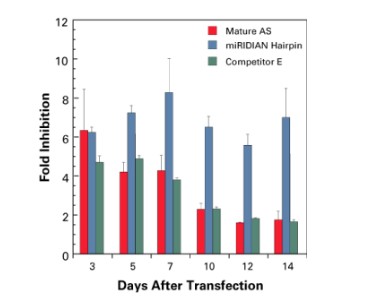 • 和传统的21-23mer长度的2'-O-甲基修饰的反义核苷酸相比较,有更高的抑制效应(见图1);