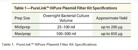 The PureLink™ HiPure Plasmid Filter Kits include Equilibration Buffer (EQ1), Resuspension Buffer (R3), Lysis Buffer (L7), Precipitation Buffer (N3), RNase A, Wash Buffer (W8), Elution Buffer (E4), TE Buffer (TE), and HiPure Filter Columns. Store all components at room temperature upon receipt.