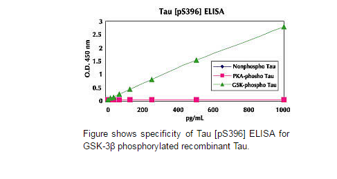 人 Tau [pS396] ELISA 试剂盒 (Tau [pS396] Human ELISA Kit) 可对脑脊液 (CSF)、缓冲液、细胞培养基中的天然和重组 Hu Tau [pS396] 进行定量。 磷酸化 Tau 可引起神经退行。
