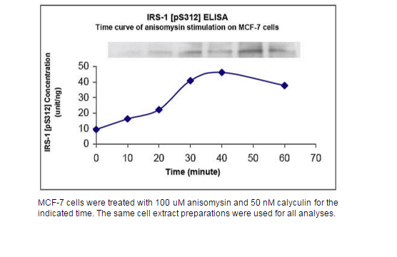 The IRS1 [pS312] Human ELISA kit is designed to detect and quantify the level of IRS1 [pS312] protein phosphorylated at serine residue 312. This assay is intended for the detection of IRS1 [pS312] from human, mouse and rat cell extracts using 96-well plates and a microplate reader.