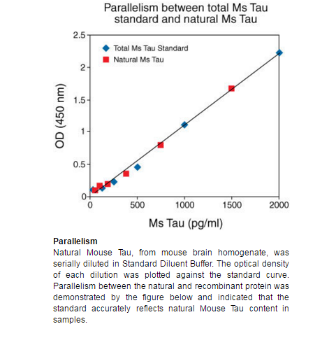 The TAU (Total) Mouse ELISA kit is designed to detect and quantify the level of TAU protein. This assay is intended for the detection of TAU from mouse tissue homogenates and supernatants using 96-well plates and a microplate reader.