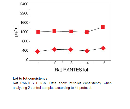 The RANTES Rat ELISA Kit quantifies natural and recombinant rat RANTES in serum, buffered solution, or cell culture medium. RANTES (Regulated Upon Activation, Normal T-Cell Expressed and Secreted) is a member of the C-C chemokine family. This is an alternate product for Cat. No. KRC1032.