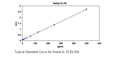 The IL-10 Swine ELISA Kit quantifies natural and recombinant swine IL-10 in serum, swine plasma, buffered solution, or cell culture medium. IL-10 is a lymphokine involved in immune response.
