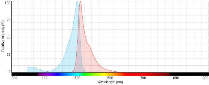 LysoTracker® Green DND-26 是对活细胞中的酸性区室进行染色的一种绿色荧光染料,具有 504/511 nm 的最大激发/发射波长。