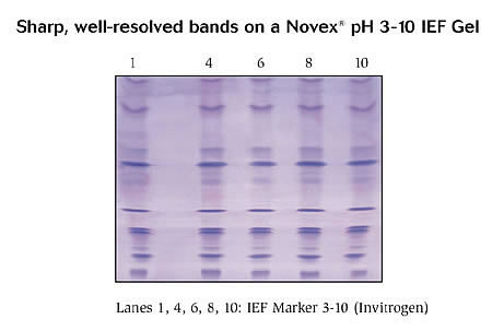 Novex® IEF Anode Buffer (50X) is optimized pre-mixed IEF anode buffer for using with Novex® IEF gels. IEF is a sensitive technique which is affected by many factors. The optimized pre-mixed IEF buffers reduce variability and ensure consistent results.