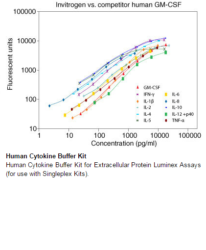 The Human Extracellular Protein Buffer Reagent Kit is comprised of the reagents that are intended for use with Human and Monkey Extracellular Singleplex Bead Kits for in vitroquantitative determination of analytes in serum, plasma, and tissue culture supernatant. Singleplex Bead Kits have been developed to maximize flexibility in experimental design, permitting the measurement of one or multiple analytes in panels designed by the researcher. These reagents are suitable for use with the Luminex® 100™/200™ and the FLEXMAP 3D®systems.