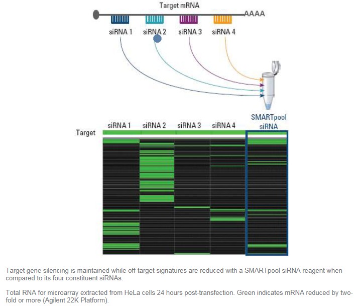 • 是由SMARTselectionTM技术所设计的四条siRNA双链的混合物;