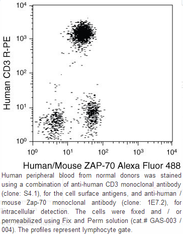 Mutations in ZAP-70 gene results in a form of Severe Combined Immunodeficiency Syndrome (SCID) in humans. ZAP-70 expression also defines a subset of Chronic Lymphocytic Leukaemia (CLL) in patients with unmutated Ig gene and poor clinical course.