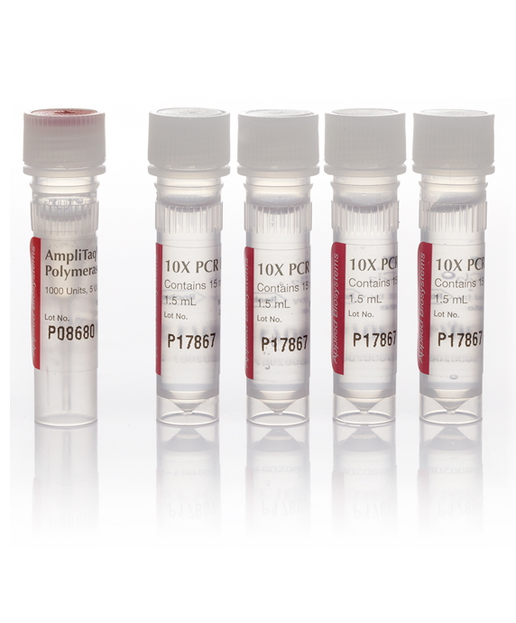 AmpliTaq® DNA Polymerase is a 94 kDa, thermostable, recombinant DNA polymerase obtained by expression of a modified form of the Thermus aquaticus (Taq) DNA polymerase gene in E. coli. It is the most thoroughly characterized enzyme available for the PCR process and its recombinant nature and purification method provide unparalleled purity and reproducibility, vial-to-vial, lot-to-lot. Features of this enzyme: