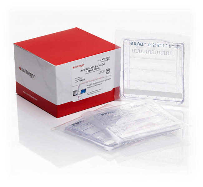 NuPAGE® Novex® 10% Bis-Tris 凝胶 (1.0-mm 厚, 10-孔) 是预制的聚丙烯酰胺凝胶,在变性条件下,对小分子量到中等分子量的蛋白质具有极佳的分离效果。 与传统的Tris-甘氨酸 凝胶不同,NuPAGE® Novex® Bis-Tris凝胶的中性pH环境,能最大程度减少蛋白质变性。用NuPAGE® Novex Bis-Tris 凝胶制备的完整的蛋白质,对于蛋白质测序,质谱以及其他技术领域具有重要作用。同样的,用NuPAGE® 制备的凝胶也可以满足日常蛋白质分离要求。NuPAGE® Novex®Bis-Tris 凝胶有两种尺寸以及多种孔型构造。 每盒有10张凝胶。 • 快速的运行时间—35分钟即可完成电泳 • 更长的有效期—NuPAGE® Novex® Bis-Tris 凝胶在室温条件可保存至少1年时间 • 更好的蛋白质完整性—已经过优化的样品制备过程,可保护蛋白质的完整性。 • 多种分子量分离范围—选择合适的凝胶和电泳缓冲液,获得最佳的分离效果 为蛋白分离选择合适的 NuPAGE® Novex® Bis-Tris 凝胶 选择合适的凝胶和电泳缓冲液组合,获得最佳的分离效果。 NuPAGE® Novex® Bis-Tris小型凝胶的丙烯酰胺浓度有三种可供选择: 10%, 12%, 和 4-12% 。对于中型凝胶,我们提供了 8% 的浓度。 上述凝胶类型与NuPAGE® MES 或 NuPAGE® MOPS SDS电泳缓冲液组合使用,可获得不同分离范围。NuPAGE® Novex® Bis-Tris 凝胶是采用Bis-Tris/HCl缓冲液 (pH 6.4) 制成的聚丙烯酰胺凝胶。凝胶在分离过程中的工作pH值接近7。 根据您的样品大小,选择合适的NuPAGE® Novex® Bis-Tris凝胶 根据您的样品大小,选择合适的NuPAGE® Novex® Bis-Tris凝胶。有两种凝胶尺寸:小型(10 cm x 10 cm) 和 中型 (8.7 cm x 13.3 cm) 和 1.0 mm (小型和中型凝胶) 或1.5 mm (只有小型凝胶)两种厚度。NuPAGE® Novex® Bis-Tris 凝胶也有多种孔规格。 使用快速,方便 NuPAGE® 查看更多Novex® Bis-Tris 凝胶配合NuPAGE® MES 缓冲液,最快可以用35分钟即可完成电泳。NuPAGE® Novex® Bis-Tris 凝胶在+4–25°C条件下可以保存1年。与传统的Tris-甘氨酸 凝胶不同,NuPAGE® Novex® Bis-Tris 凝胶中性pH环境,能最大程度减少蛋白质变性。 凝胶提供清晰度更高的条带和高分辨率,更长保质期,高准确性的结果。 NuPAGE® Novex® Bis-Tris 凝胶专为变性凝胶电泳而设计。为了获得最佳的样品制备,请使用 NuPAGE® LDS样品缓冲液 和 NuPAGE® 样品还原剂 使用 NuPAGE® 抗氧化剂在上样缓冲区,从而维持蛋白质在电泳过程中的还原状态和最大清晰度。 我们推荐您使用 Novex® Sharp未染色蛋白质标准品; 该蛋白标准品有最宽的分子量范围,共有12个条带,范围从3.5-260 kDa。获得快速且敏感的蛋白凝胶染色,请使用SimplyBlue™安全染料. 我们同时提供 NuPAGE®Novex® T...