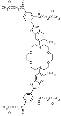 PBFI is a potassium-sensitive molecule used measure intracellular K+ fluxes in animal cells and in plant cells and vacuoles. Although the selectivity of PBFI for K+ is less than that of calcium indicators such as fura-2, it is sufficient for the detection of physiological concentrations of K+ in the presence of other monovalent cations. The spectral response of PBFI upon ion binding permit excitation ratio measurements, and this indicator can be used with the same optical filters and equipment used for fura-2.