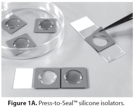 For the ultimate in utility and flexibility, press-to-seal silicone isolators can be customized to meet the needs of the researcher. They are available either pre-cut to specific interior dimensions or as sheet material that can be easily trimmed to prepare customized enclosures. These isolators are autoclavable and non-cytotoxic and can be used to isolate cells in culture dishes or to separate specimens on microscope slides.