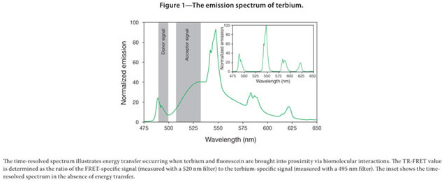 A set of two emission filters (diameter = 15 mm) for use with the LanthaScreen™ Tb assays and products: 495 nm filter with a 10 nm bandpass, and a 520 nm filter with a 25 nm bandwidth.