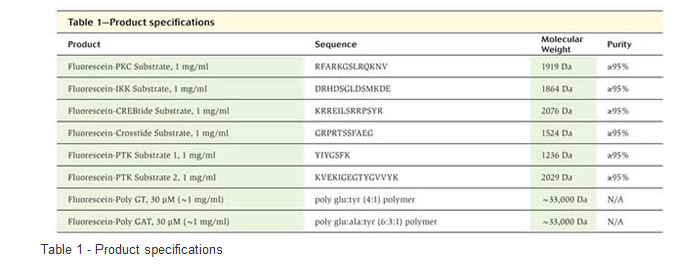 A fluorescein-labeled peptide substrate for the Protein Kinase C (PKC) family. For use in combination with the LanthaScreen® Tb-pSer (PKC Substrate) antibody (PV3560) to evaluate inhibitors in medium to high throughput screening applications.
