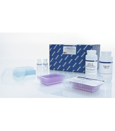 QIAquick 96 PCR Purification Kits含有96孔板、缓冲液和收集管,利用硅胶模纯化技术高通量纯化大于100 bp PCR产物。通过简单、快速的结合、洗涤、洗脱的流程纯化长达10 kb的DNA,洗脱体积为60–80 μl(最终洗脱体积为40–60 μl)。回收过程可在BioRobot工作站上使用QIAquick 96 PCR BioRobot Kit全自动运行。