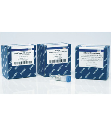 为确保miRNA real-time PCR分析获得准确、可重复性的结果,必须通过使用合适的内参RNA对靶基因miRNA的量进行标准化,即相对定量分析。在使用miScript PCR System进行miRNA定量分析中,miScript PCR Controls是内参的引物,使得结果标准化。miScript PCR Controls提供一组5个 snoRNAs(SNORD61、SNORD68、SNORD72、SNORD95和SNORD96A)及snRNA RNU6B(RNU6-2)。这些内参的设计参考了人类、小鼠、大鼠和狗中的序列同源性,同一个参照可用于4个物种。也可在GeneGlobe上单独订购miScript PCR Control。