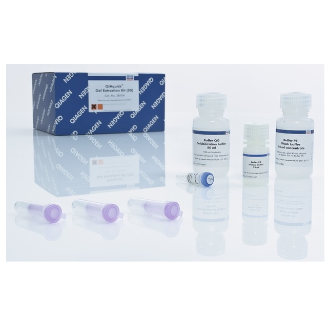 QIAquick Gel Extraction Kit能够去除样本中的核苷酸、酶、盐、琼脂糖、溴化乙锭和样本中的其他杂质,确保高达80%的DNA回收率(参见"High recoveries from gels")。使用离心机或者真空底座,可从1–24个样本中纯化得到70 bp到10 kb的DNA。纯化的DNA可用于测序等应用(参见Reliable sequencing after gel extraction)。小于70 bp或者大于10 kb的DNA片段应该使用QIAEX II Gel Extraction System进行纯化。