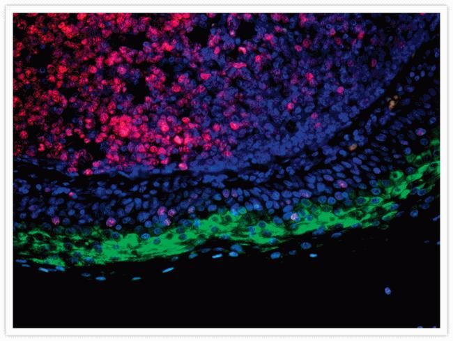 Qdot nanocrystals are composed of semi-conductor material to generate a fluorescent particle which is exceptionally bright and does not photobleach. Qdot nanocrystals paired with the correct optical filters are as much as 50 times brighter than traditional organic dyes.