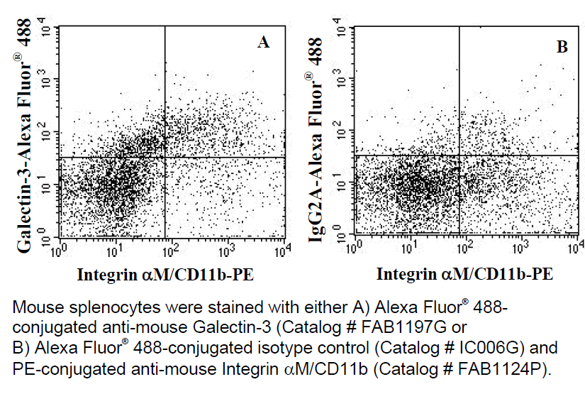 Reagents Provided:Alexa Fluor® 488-conjugated rat monoclonal anti-mouse Galectin-3: Supplied as 10 μg of antibody in 0.5 mL saline containing up to 0.5% BSA and 0.1% sodium azide.