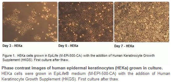 用于与 EpiLife® 培养基或 Medium 154 配合使用以培养人表皮角质细胞的无菌浓缩 (100X) 溶液。 HKGS 是离子平衡添加剂,含有牛垂体提取物 (BPE)、牛胰岛素、氢化可的松、牛转铁蛋白和人表皮生长因子。每个 5 ml HKGS 瓶含有人表皮角质细胞培养所需的所有生长因子、激素和组织提取物,每一瓶中的添加剂含量适合用于 500 ml 的培养基瓶。 向 500 ml 培养基瓶添加 HKGS 后,培养基中各种成分的最终浓度为:•牛垂体提取物 (BPE),0.2% v/v •牛胰岛素,5 µg/ml •氢化可的松,0.18 µg/ml• 牛转铁蛋白,5 µg/ml• 人表皮生长因子,0.2 ng/ml