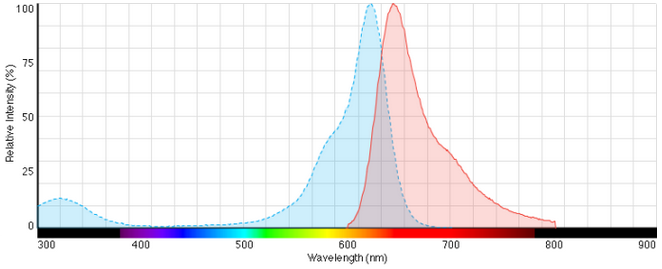The cell-permeant SYTO 59 red fluorescent nucleic acid stain exhibits bright, red fluorescence upon binding to nucleic acids. Because the staining pattern of the SYTO dyes in live cells may vary between cell types, we offer the SYTO Red Fluorescent Nucleic Acid Stain Sampler Kit (S-11340) to enable researchers to find the most appropriate red-fluorescent SYTO stain for their system.