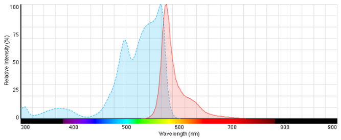 •Ex/Em maxima of ~ (496, 546, 565/578) nm