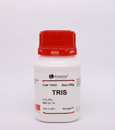 Tris 是一种有机化合物, 白色至微黄色结晶性粉末或块,化学式C4H11NO3,溶于乙醇和水,微溶于乙酸乙酯、苯,不溶于乙醚、四氯化碳。25°C时溶解度(mg/mL):水550、乙二醇79.1、甲醇26、无水乙醇14.6、95%乙醇22.0、N,N-二甲基甲酰胺14,戊醇2.6,丙醇2.0,乙酸乙酯0.5、环己烷0.1。水溶液不吸收二氧化碳,对铜、铝有腐蚀作用,有刺激性。是核酸和蛋白质的溶剂,广泛应用于生物化学和分子生物学实验中缓冲液的制备。 Tris缓冲能力: Tris为弱碱,在25°C下,它的pKa为8.1;根据缓冲理论,Tris缓冲液的有效缓冲范围在pH7.0到9.2之间。0.1mol/l的水溶液pH为10.4,一般加入盐酸以调节pH值,即可获得所需pH值的缓冲液。但同时应注意温度对于Tris的pKa的影响对于 Tris 缓冲液,温度每降低 1°C,pH 增加约 0.03 个单位,浓度每稀释 10 倍,pH 降低 0.03-0.05 个单位。 对于精确应用,使用带有玻璃/甘汞复合电极的经仔细校正的 pH 计。。 Tris主要应用为: 1. 1M Tris-HCl 6.8、1.5M Tris-HCl 8.8和5×Tris-甘氨酸电泳缓冲液是SDS-PAGE最常用的试剂。 2. 在Tris盐酸缓冲液中加入EDTA制成“TE缓冲液”,TE缓冲液被用于DNA的稳定和储存。将调节pH值的盐酸换为乙酸即可以得到“TAE(Tris/Acetate/EDTA)缓冲液”,换成硼酸则获得“TBE(Tris/Borate/EDTA)缓冲液”。TAE和TBE缓冲液常用于核酸电泳实验中。 3. 其他的应用:Tris被用于不同pH条件下的蛋白质晶体生长。Tris缓冲液的低离子强度特点可用于线虫(C. elegans)核纤层蛋白(lamin)的中间纤维的形成。 贮存条件:室温干燥保存。 使用注意事项:若吸入、摄入、皮肤吸收,对身体有害,使用时注意防护。