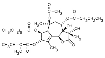 Thapsigargin is a naturally occurring sesquiterpene lactone isolated from the umbelliferous plant Thapsia garganica. This tumor promoter releases Ca2+ from intracellular stores by specifically inhibiting the endoplasmic reticulum Ca2+-ATPase; it does not directly affect plasma membrane Ca2+-ATPases, Ins 1,4,5-P3 production or protein kinase C activity.