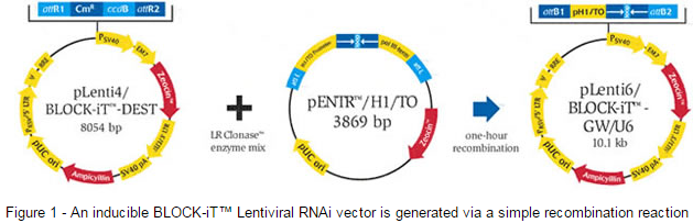 Gateway® Technology for efficient recombination of the RNAi cassette from the BLOCK-iT™ inducible pENTR™/H1/TO vector